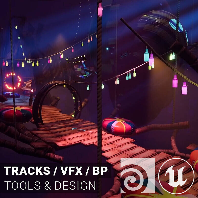 I prototyped metrics, coyote time/ledge grab and gameplay challenges, established with the artists modular kits, and crafted tools to speed up the level design and set dressing workflows.